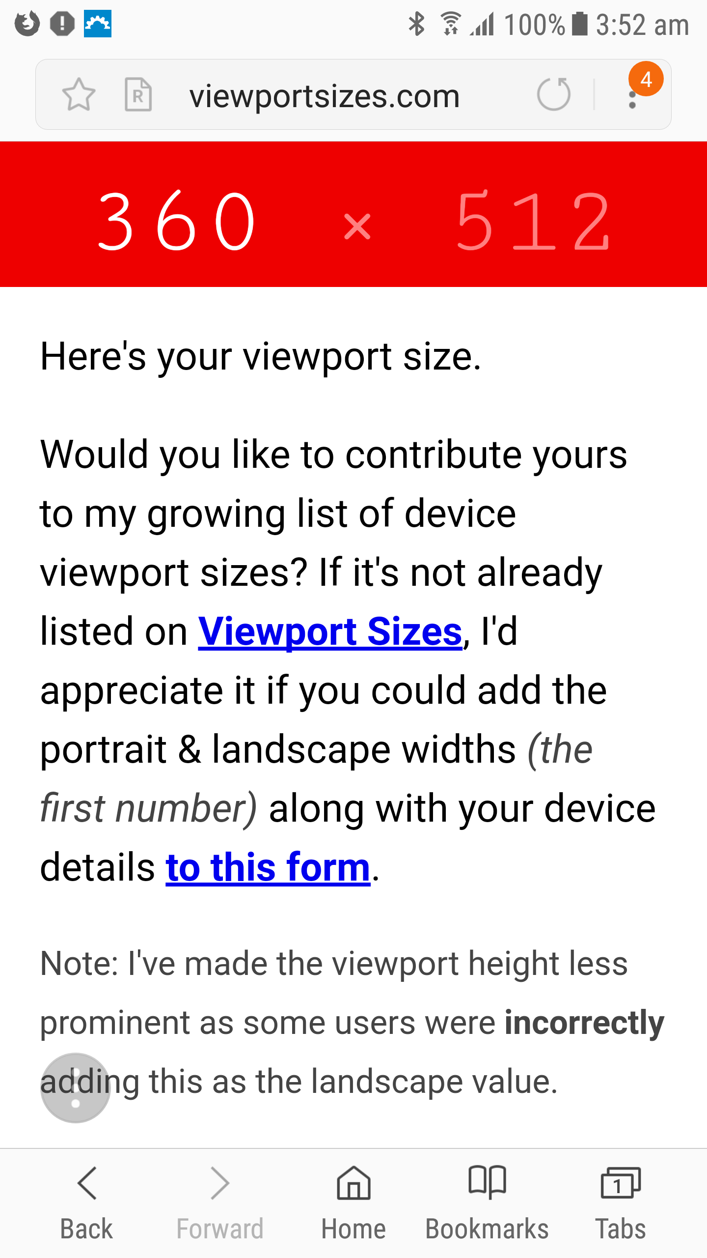 6. The visible portion of the webpage is defined as a standard CSS pixel size of 360x512px (Samsung Galaxy S7 with the SBrowser), which is based on the standard viewport of 360x640px, but with the OS- and browser UI elements deducted.